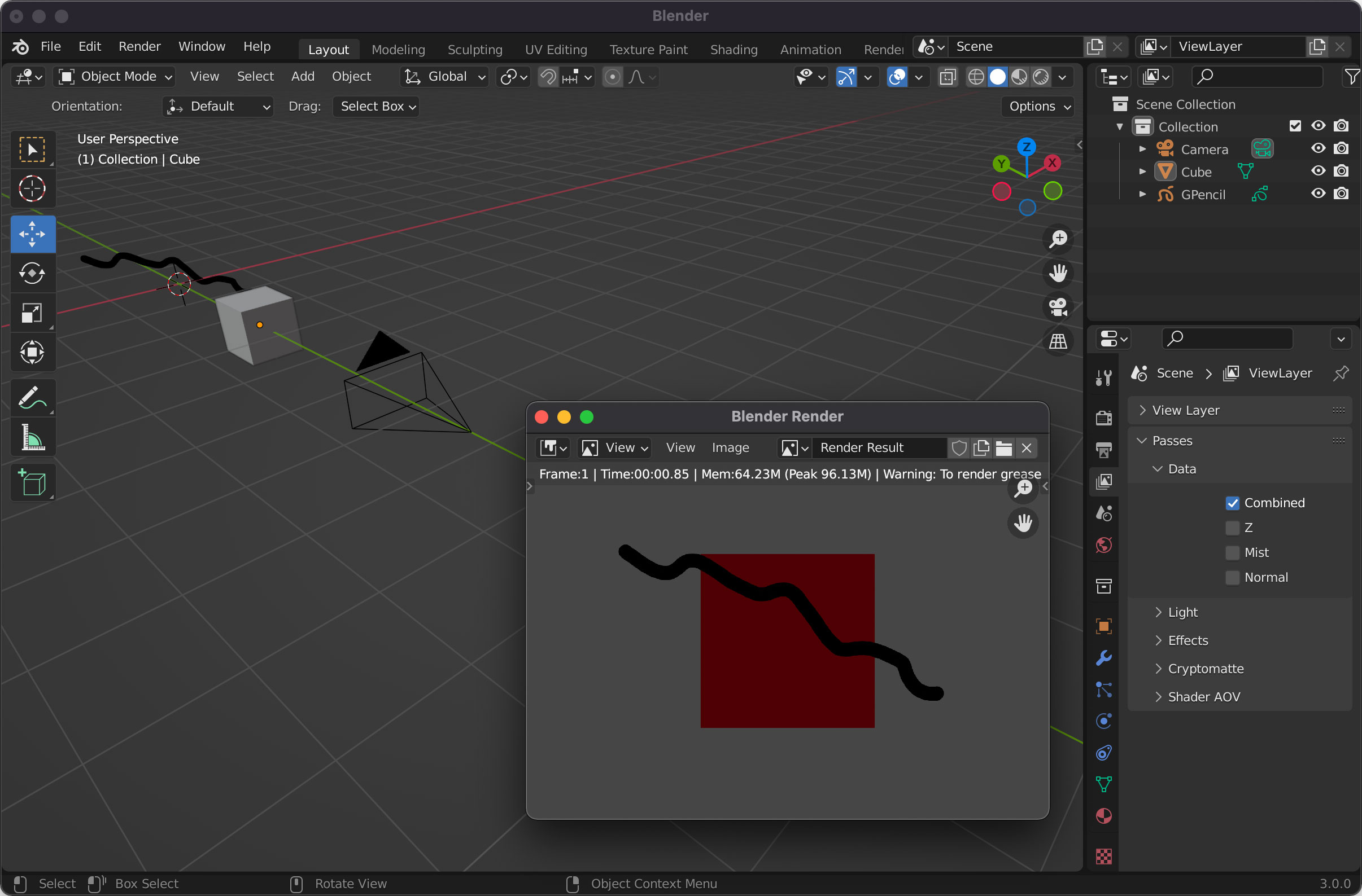 Grease pencel 이 3d 오브젝트를 덮어버리는 현상이 있습니다.